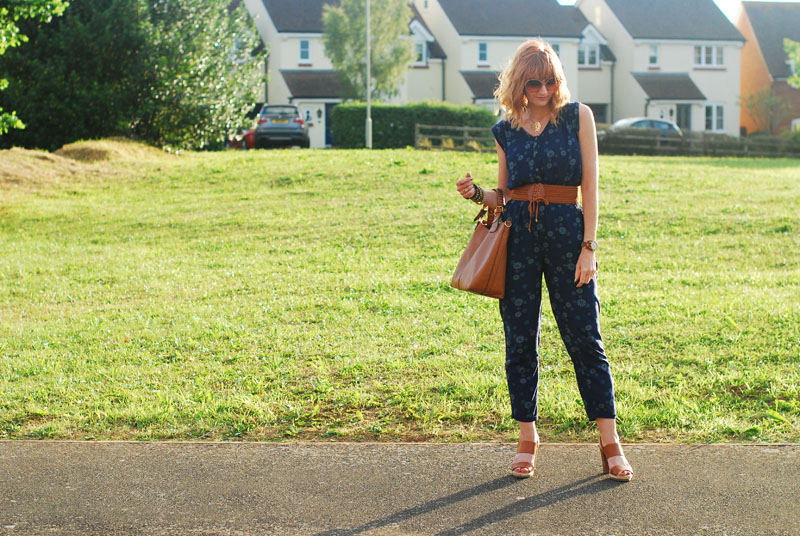 That’s not to say you shouldn’t accessorise a little more than that, as I’ve done here…! Although I’m not usually a fan of matchy-matchy accessories it seemed right to wear everything tan with this M&S jumpsuit I bought last year (this star print jumpsuit is really similar if you like mine). The sandals are aeons old and still a firm favourite – together with a bit of ankle showing from a rolled up hem they give you an elegant look and do that wonderful thing of elongating your legs.