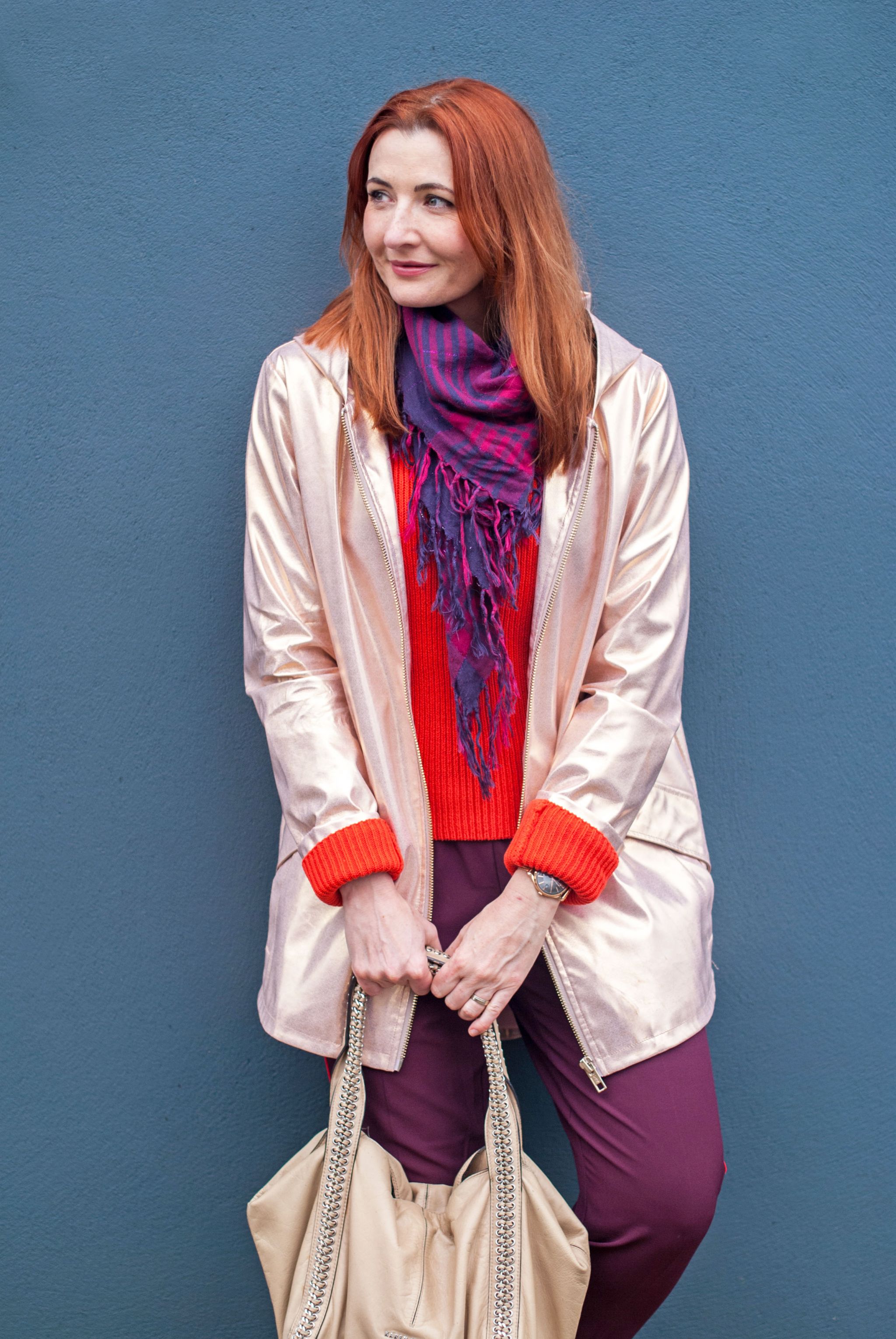 Seeing as the classic colour for raincoats is beige, a metallic raincoat is certainly not for the fainthearted. But when I wore this outfit we were right in the middle of April showers so something bright and warm was essential. The UK is set for a “hotter than Greece” style heatwave this week (I am not joking), so within the space of just four weeks we will have had full-on snow, a lot of rain and then a heatwave.