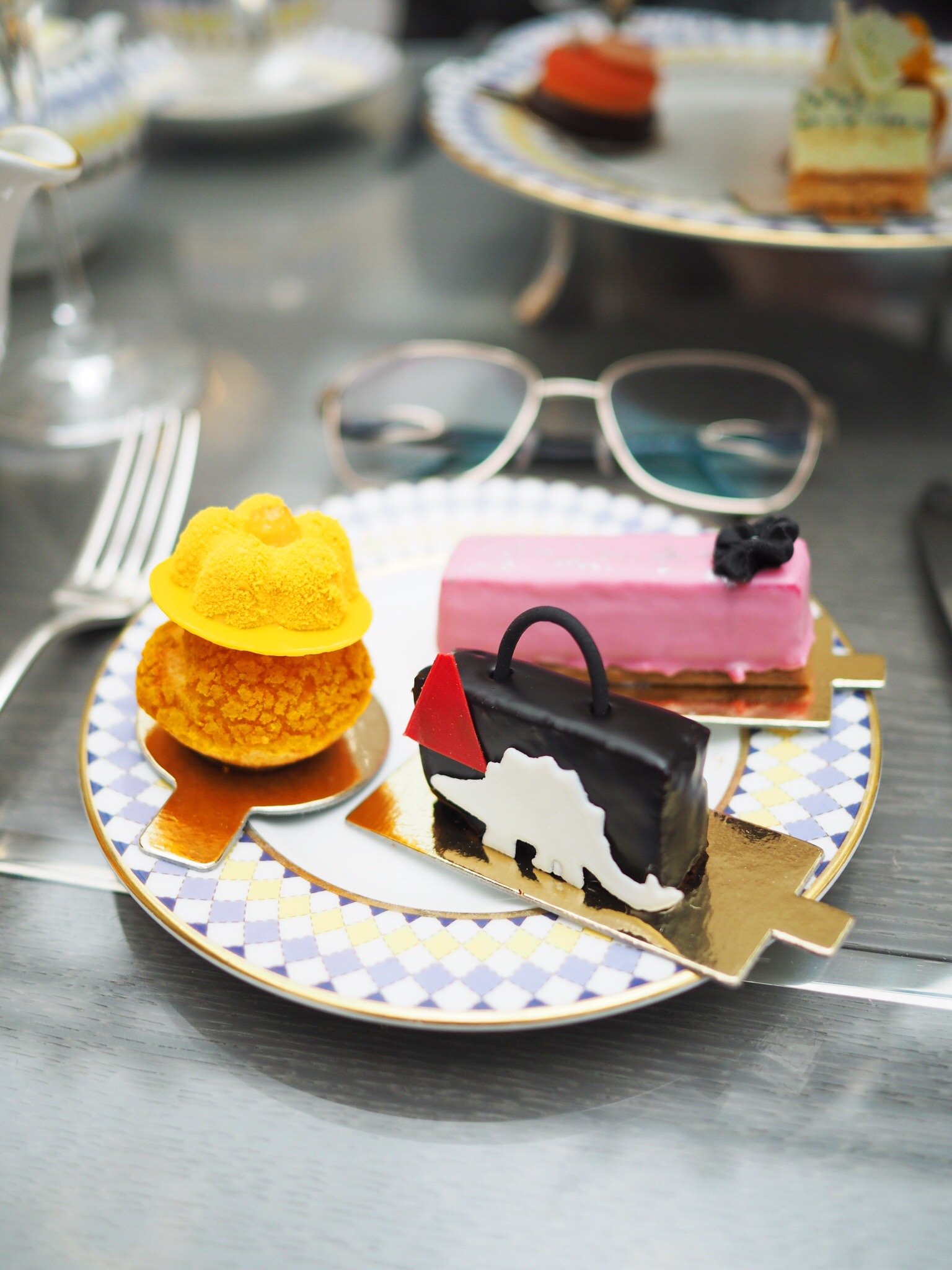 Now this wasn’t just any old afternoon tea, this is probably one of the top afternoon teas in London. The Berkeley’s afternoon tea is inspired by the world of fashion (how apt!) and is known as their Prêt-à-Portea. It changes every six months so they’d just switched to AW18 when we went: we had cakes and biscuits fashioned like Victoria Beckham and Prada bags, Midnight 00 shoes, Fendi boots, etc. It was absolutely EXQUISITE, and everything tasted as good as it looked. It includes all the tea and all the flavours you could hope for – I had White Peony tea – and beautiful tea sandwiches, taster bowls and canapés.