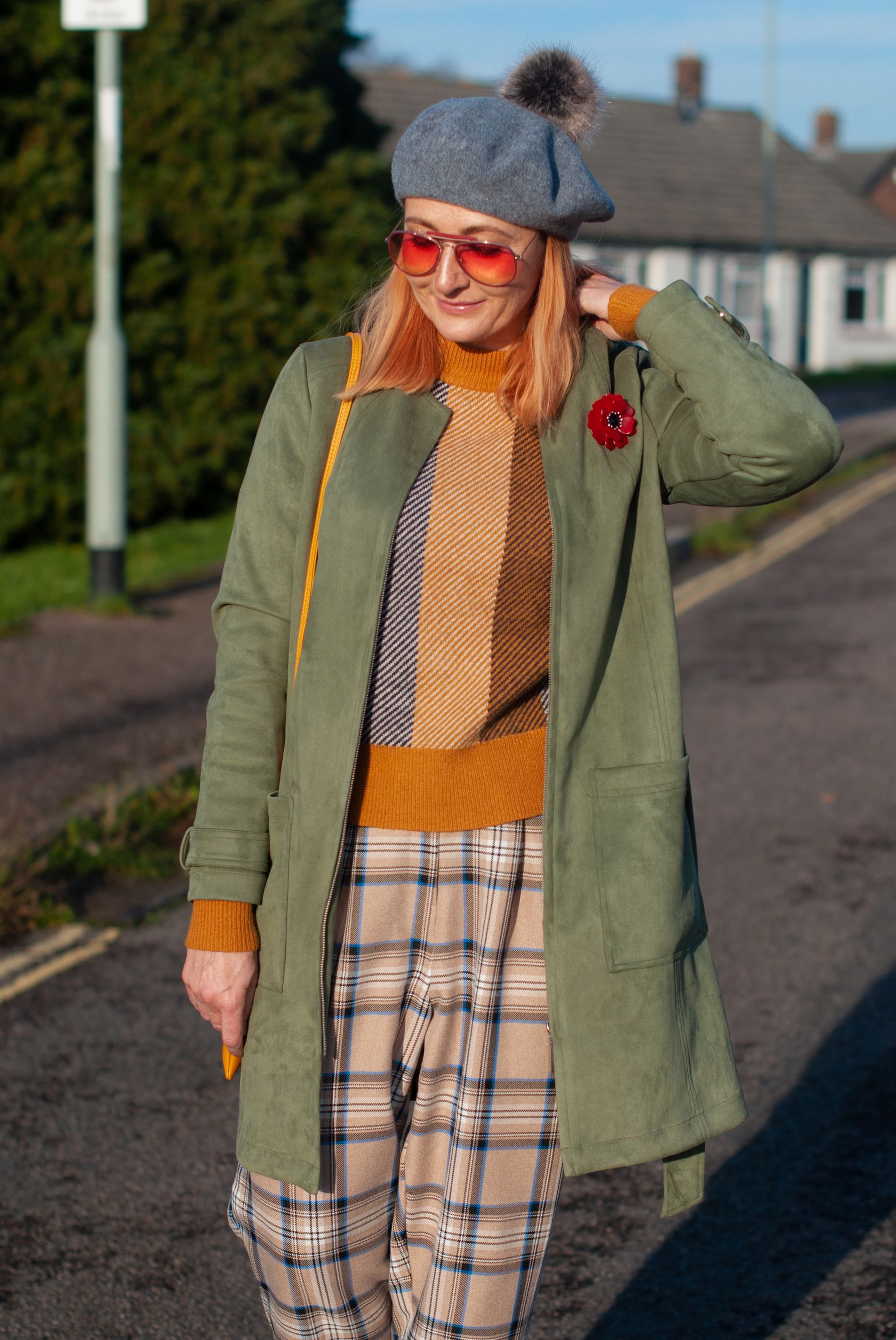 This weekend was Remembrance Sunday and I wear my poppy brooch every year during the week leading up to Armistice Day. I wanted it to show up so opted for the olive longline jacket that I’ve worn several times before on the blog – scroll down to see all the ways I’ve styled it.