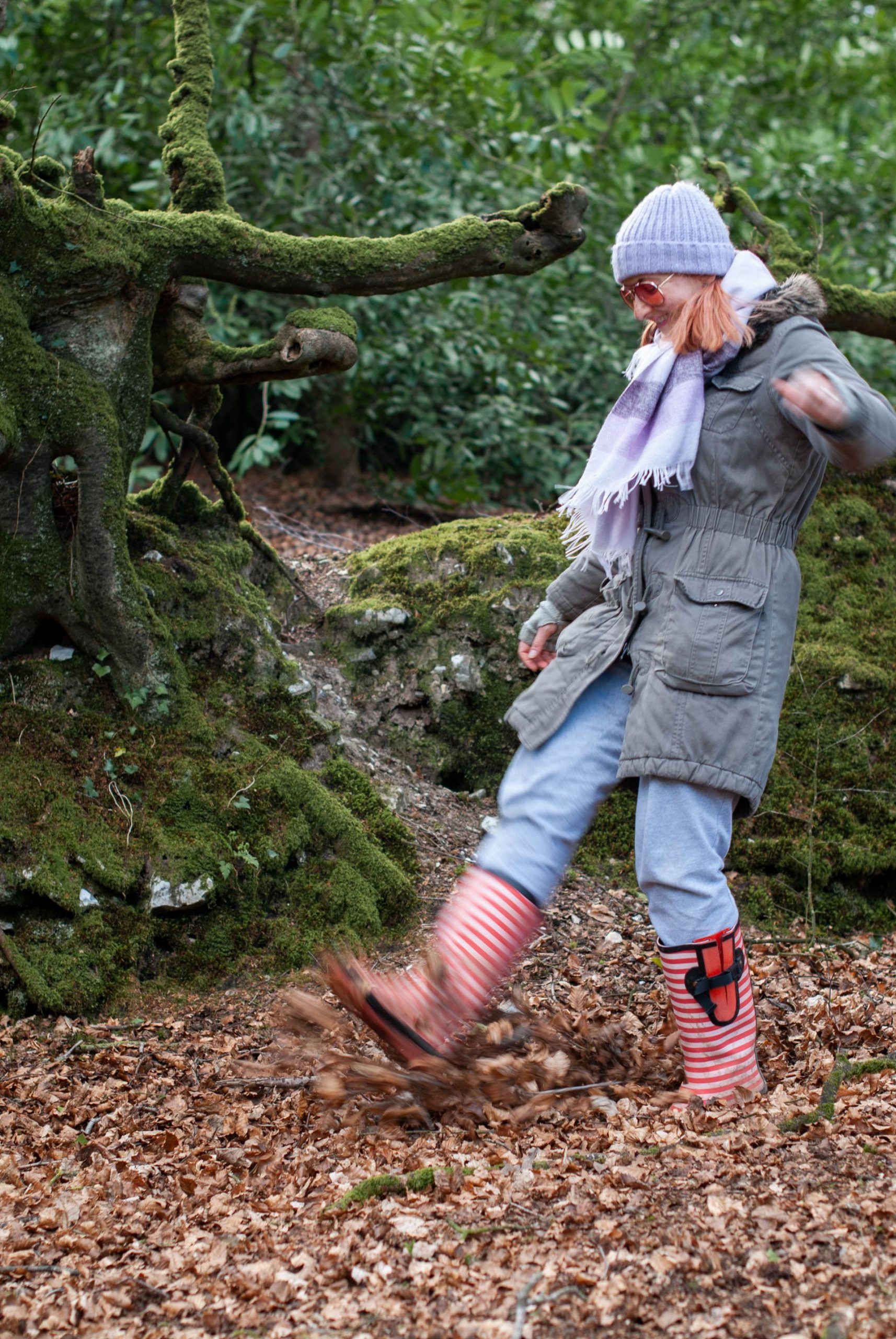 So here we have some gorgeous pictures of the woodlands near us and a beautiful doggo together with a fashion blogger who looks like she put on the first thing that was to hand that morning.
