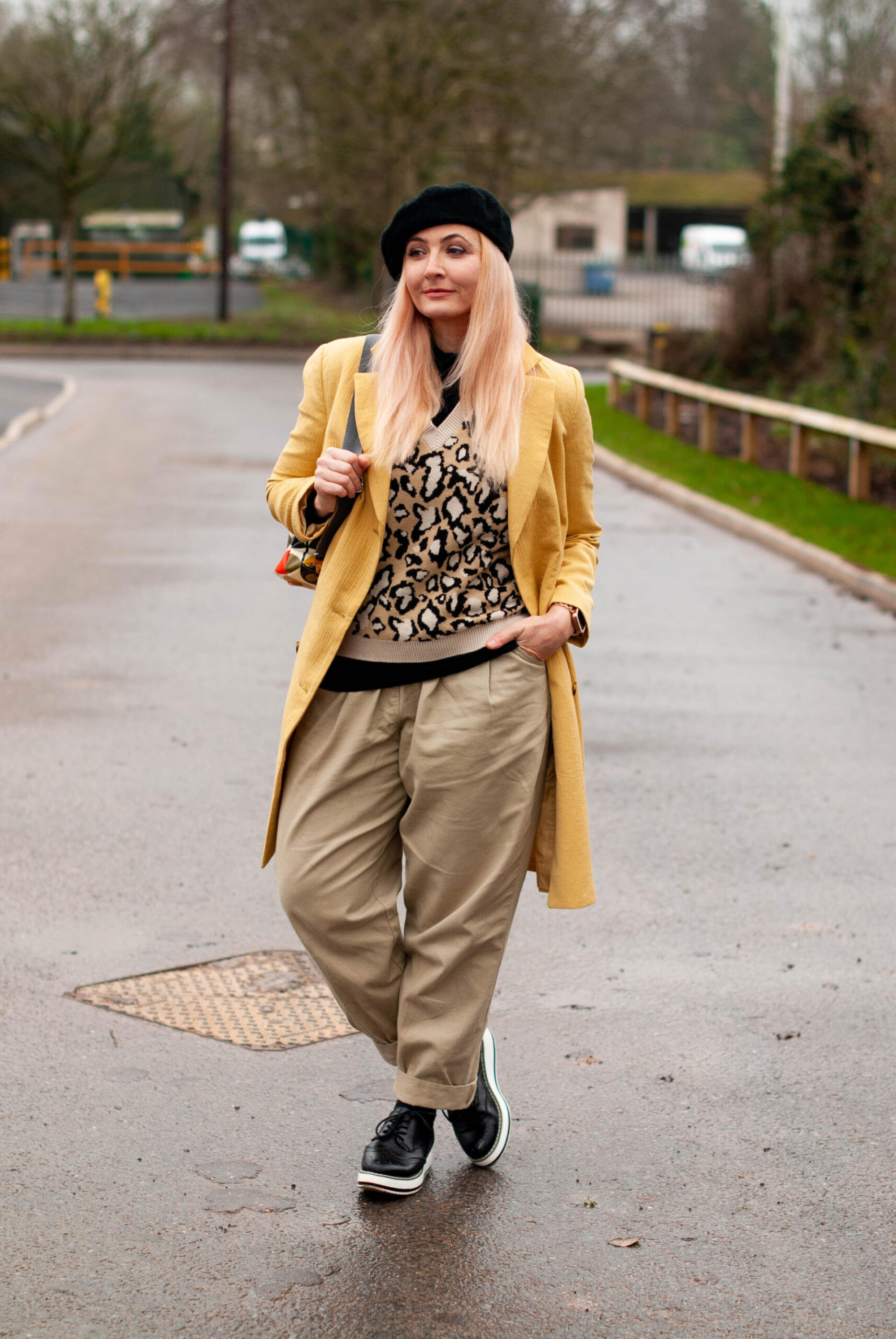 Anyway here’s my French-chic outfit with a great yellow coat, leopard sleeveless knit (!), black beret and some baggy trousers that I’ve been wearing on repeat all winter (don’t ask me how everything is still available, nothing’s particular new). Plus my Orla Kiely backpack* is the most perfect choice colours-wise. I kinda loved this outfit.