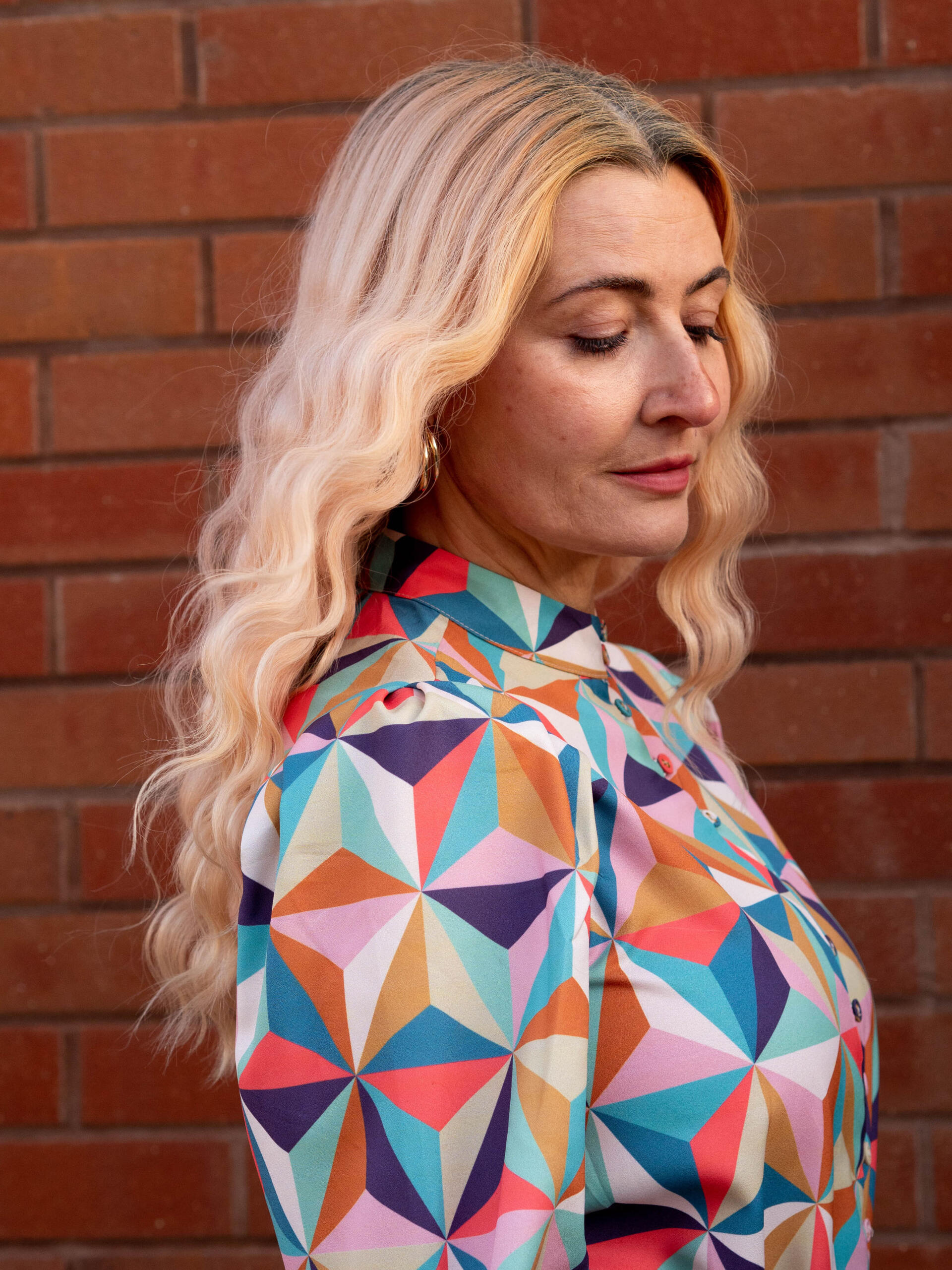 The myriad of bright-but-oh-so-slighted-saturated colours. That bold, geometric pattern. The puff sleeves. The deep cuffs. The tiny covered buttons. The midi length. The loose fit (but with a waist). The delicate high collar. That pleated hem.