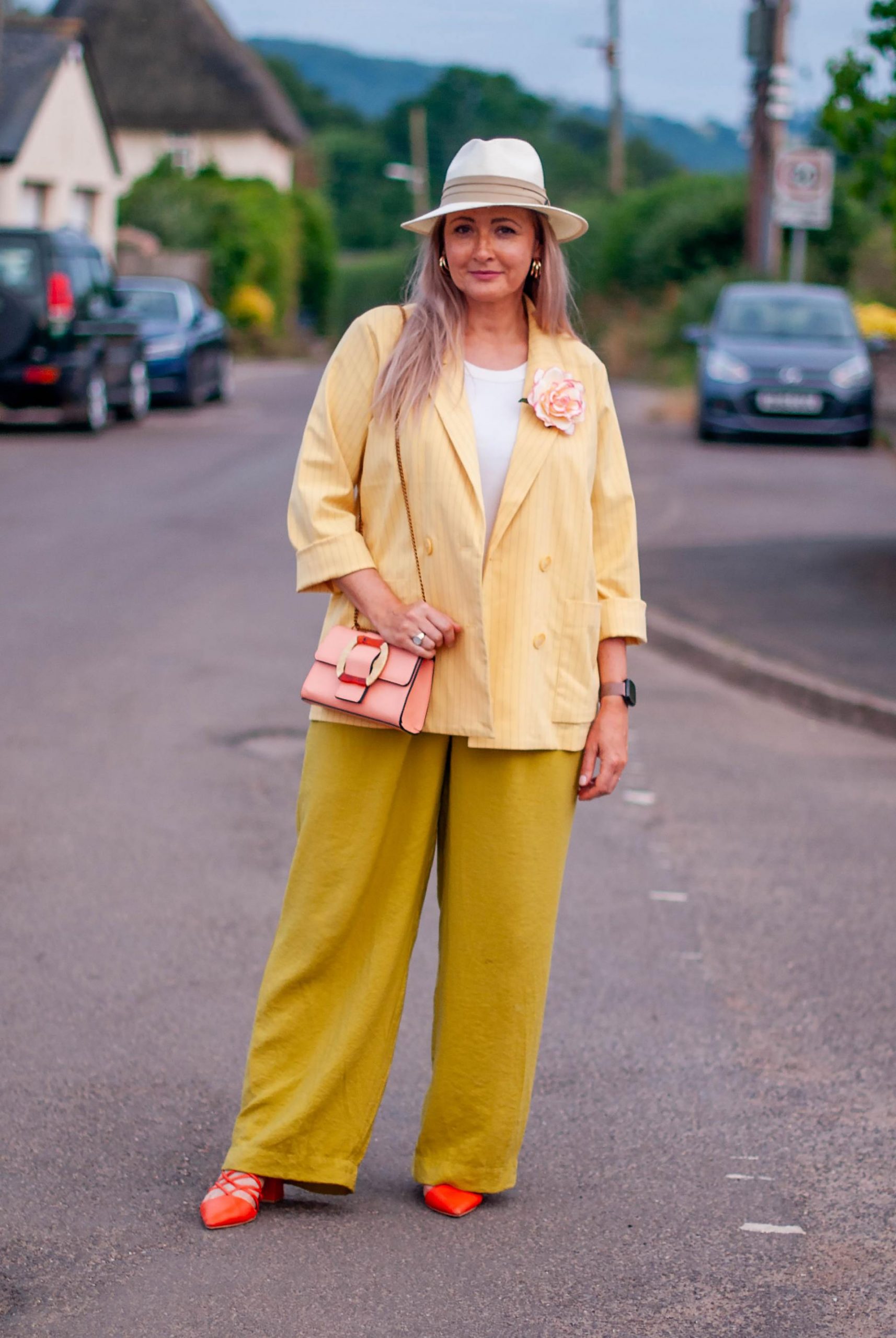 I actually changed my mind about what I was wearing until the night before – it was the blazer/trousers combination that I couldn’t decide upon. In the end, I did summery pastels with this oversized yellow blazer and the lime green wide-leg trousers (similar) plus a few fabulous accessories (the Carrie Bradshaw-style rose corsage being the one thing I knew I was definitely wearing). But to be honest it was such a wonderful wedding – one of the most relaxed I’ve ever been to – that you could have got dressed up to the nines or worn a simple cotton dress and felt fine. The day and the event were much more important, and hats off (see what I did there?) to the bride and groom because they put on a wedding that everyone actually enjoyed.